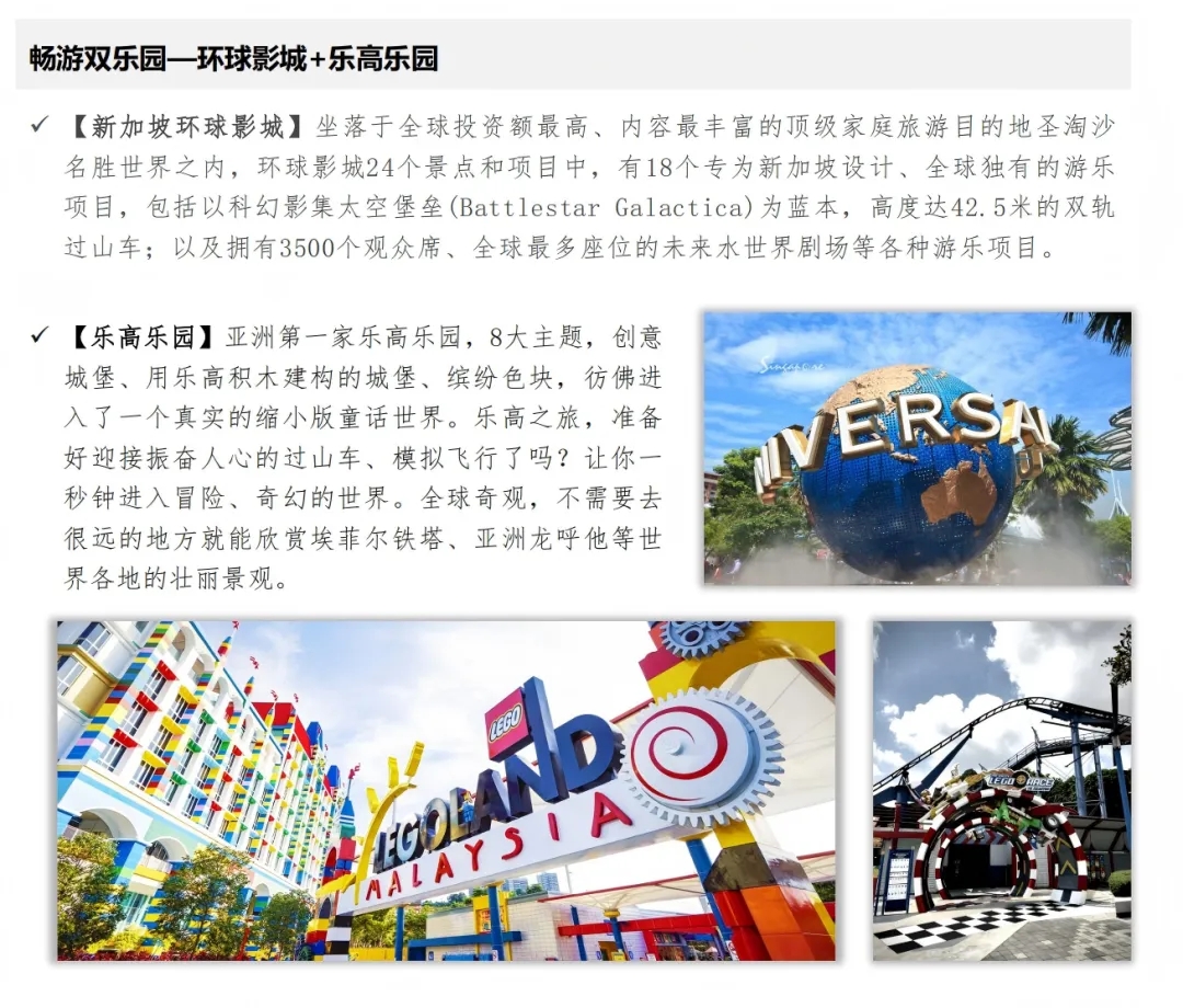 在“户外考察日”,同学们将来到新加坡的东海岸公园,在生态环境绝佳的公园里骑行,了解当地的生物多样性;也将去到孩子们最爱的“环球影城”、“乐高乐园”,相信双乐园的极致体验会让孩子们度过一段无比快乐的时光。