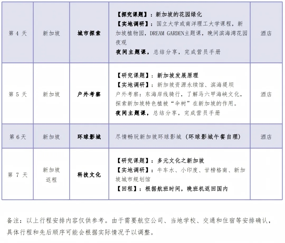 在“学校探访日”,学生们将来到新加坡国立大学或南洋理工大学的实验室,参观新加坡最前沿的科技成果,更将融入新马当地中小学的社团活动中,通过参与式活动了解当地的同龄人;