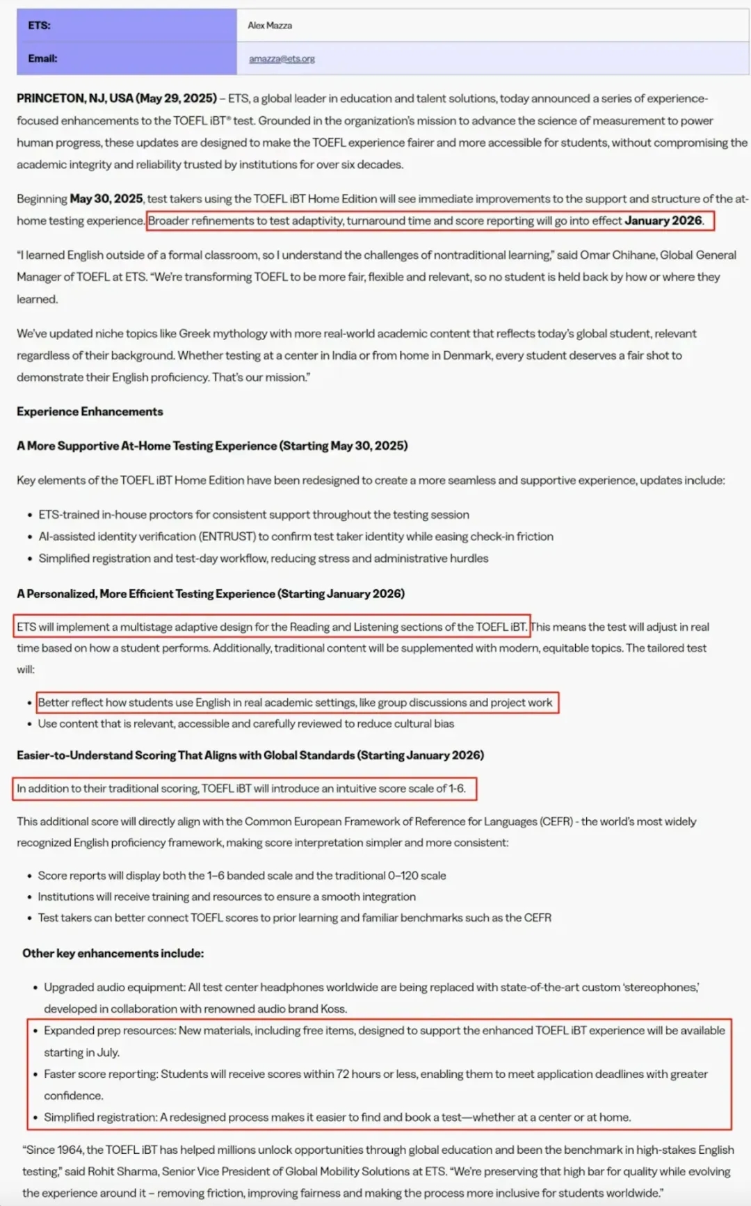本次ETS公布的托福改革主要包括四点: