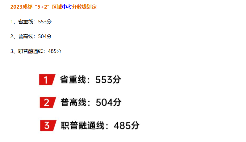 2023 年,普高线 504 分,省重线553 分。有 20052 人上线普高,14537 人上线省重;