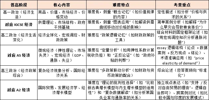 普高课程围绕 “高考大纲” 纵向深化(如数学从函数到导数的层层推导),而 A-level 课程覆盖更广,且存在大量普高未涉及的 “新知识模块”(如 A-level 经济的 “弹性理论”、化学的 “有机机理”),直接导致 “开学听不懂”。