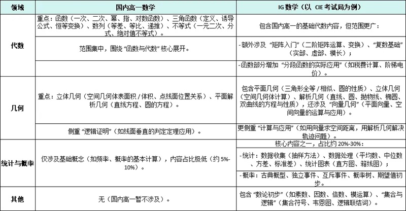 *国内高一数学和 IG 数学的内容有重叠(如代数、几何),但范围差异明显