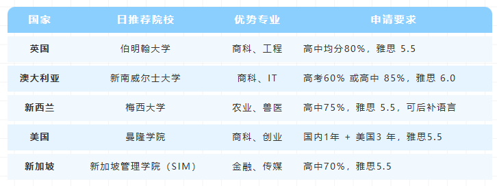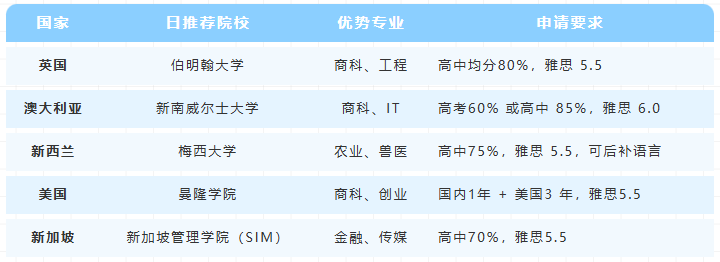 · 英国:伯明翰大学、利兹大学等接受高中成绩申请,雅思 5.5 可直接入读