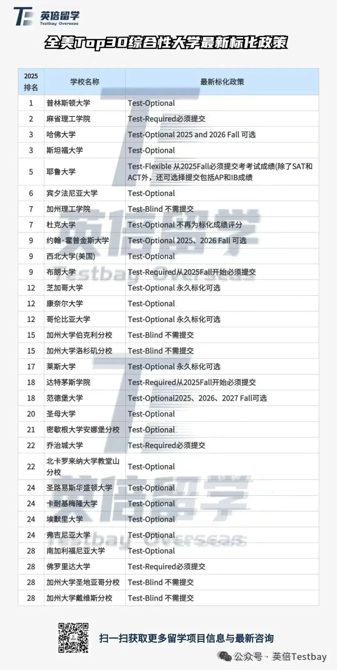 那么全美TOP30的学校,在【标化政策】上都是什么要求呢?