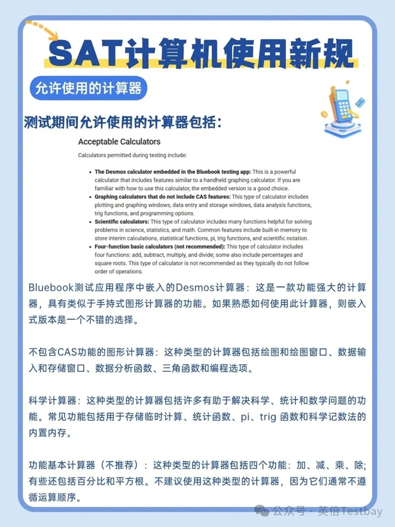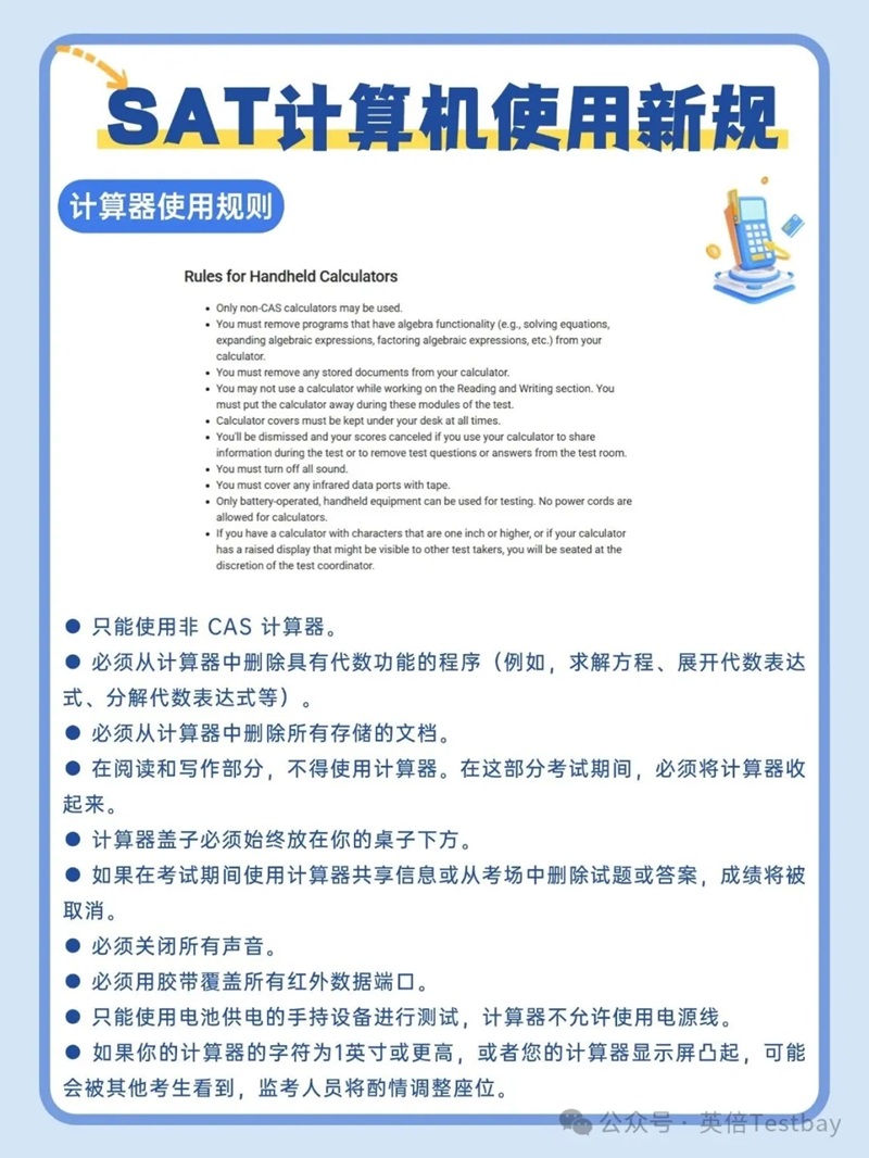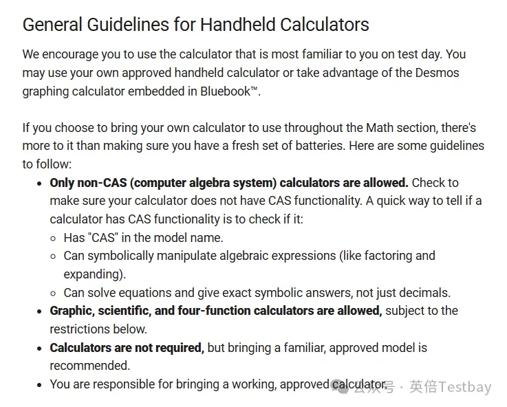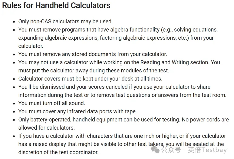 CB官网公布的SAT考试计算器使用的最新规定。