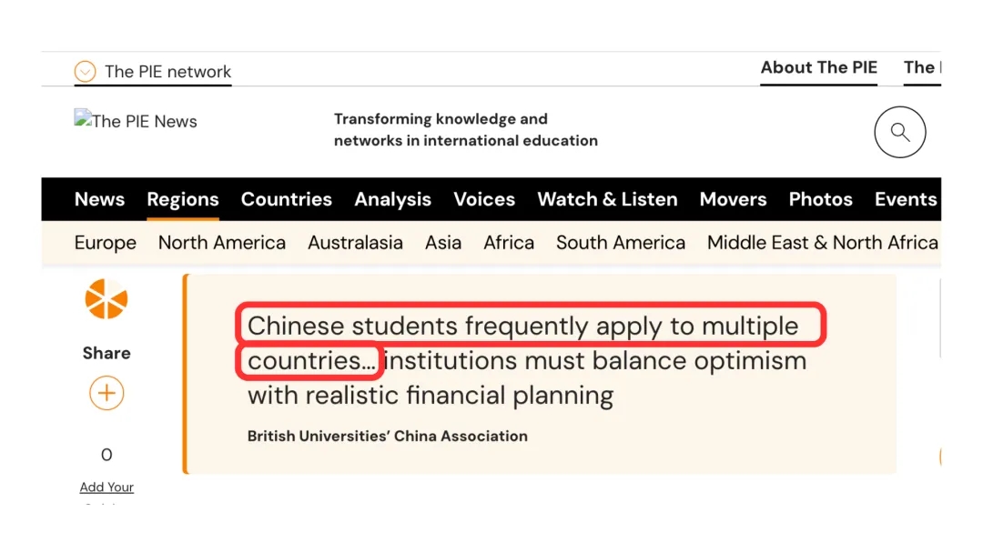 英国高校中国协会 (BUCA) 指出:尽管UCAS申请数量的增长令人鼓舞,但这并不能保证大学真实的入读率。中国学生通常会申请多个国家,英国不断上涨的学费和生活成本,加上普遍家庭财务谨慎态度的增强,都会影响其最终留学决策。
