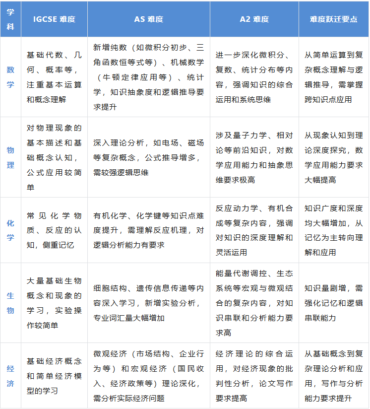 又到一年开学季,对于 IG 即将升 AS 或 AS 升 A2 的同学来说,这是关键的过渡阶段。不少同学在这个时期,会遭遇知识 “断层”,成绩出现大幅下滑。今天,就为大家详细剖析 IG 升 AS/A2 的衔接问题,给出 3 个常见雷区及应对策略,同时附上学科难度跃迁表,助你顺利度过关键期!