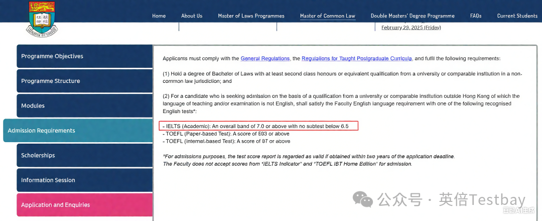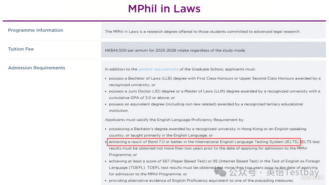 以往MCL语言要求低于LLM项目,但从今年起与港大其他LLM项目一样,要求提高至雅思7分(各单项不低于6.5)。