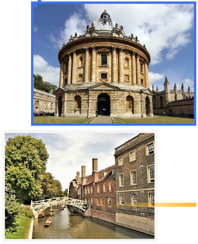 上:牛津大学;下:剑桥大学