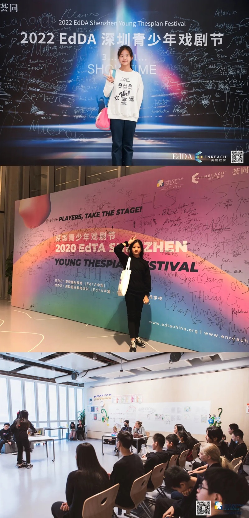 Celeste积极参加EdTA区域赛和国赛,最下图为Celeste双人情景剧活动现场