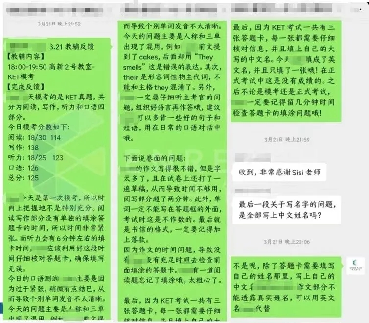 *KET模考教辅反馈截图
