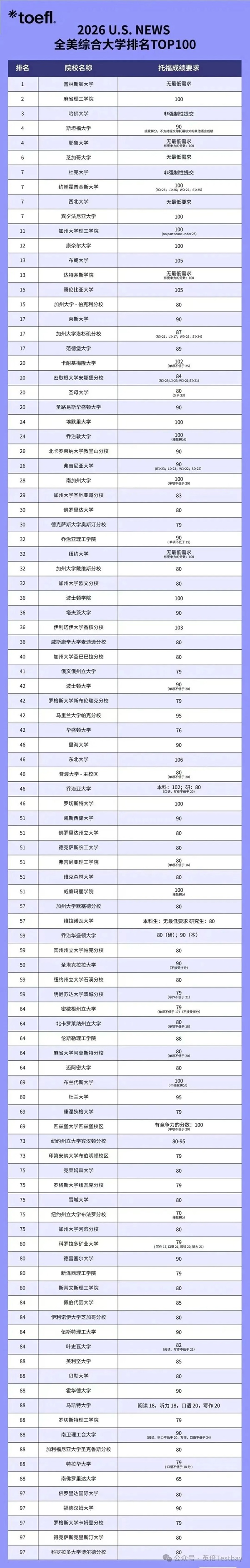 2026年TOP100大学