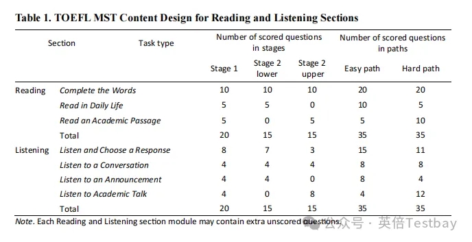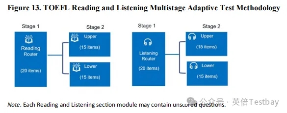 托福改革后新版阅读、听力采用 “两阶段设计”,难度会根据答题表现动态调整: