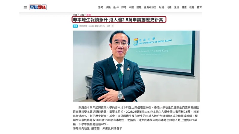 近日,香港大学招生相关负责人嚴志堅接受港媒采访时已经给出了答案:截至七月中旬2025/26学年港大的非本地生入学申请已经突破2.5万,激增近25%。其中海外国际生申请比去年增加40%,由2800+人增加至4000+人;内地学生申请增加近20%,由17000+人增加至21000+人。