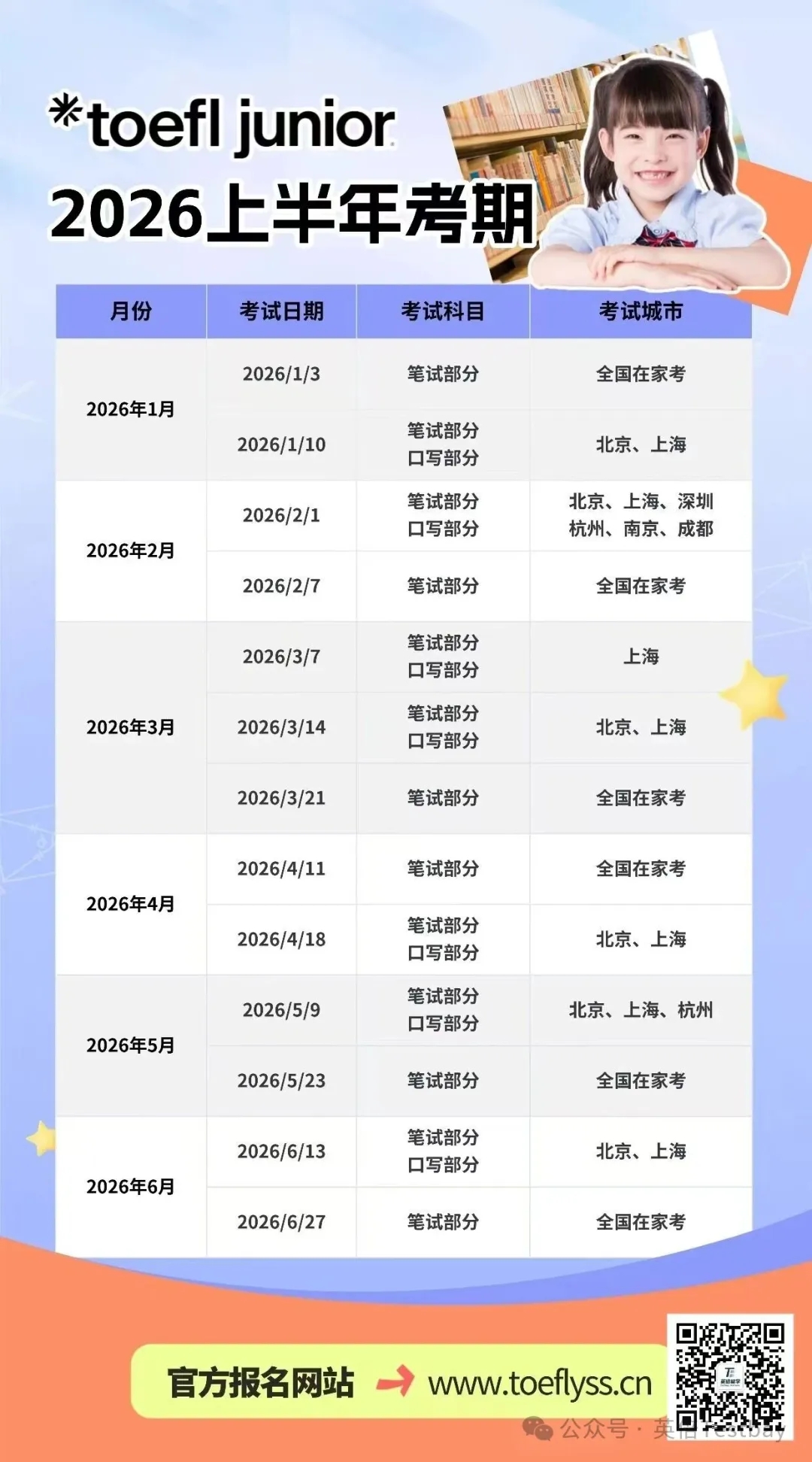 小托福2026上半年考位