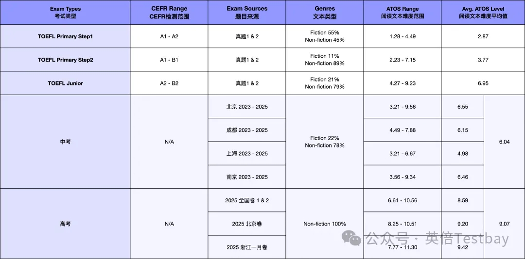 因此,托福青少系考试更适合作为中考与高考的衔接桥梁。其核心能力考查(如主旨归纳、逻辑推断、写作意图分析等)与中考要求高度重合,并契合高考对学术素养的侧重。研究表明,学生日常接触的文本以虚构类为主,而高等教育与职业场景中非虚构文本占比更高。为弥合课堂学习与现实应用的差距,教育评价体系正通过更具挑战性的文本引导学生适应真实需求。这一理念在高考与托福青少系考试的选材中已得到充分体现,共同指向培养学生综合阅读素养的目标
