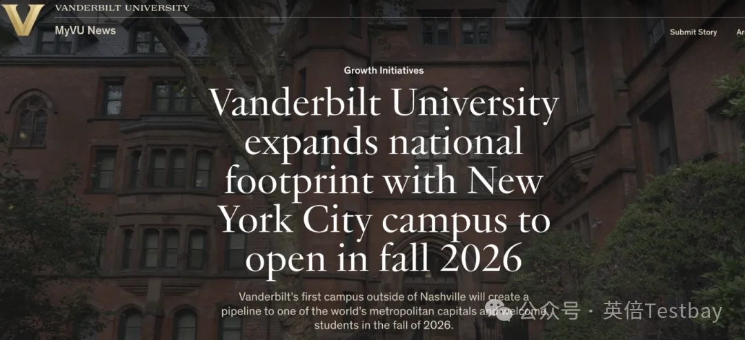 有“南方哈佛”之称的全美Top17范德堡大学最新官宣:纽约校区来了!