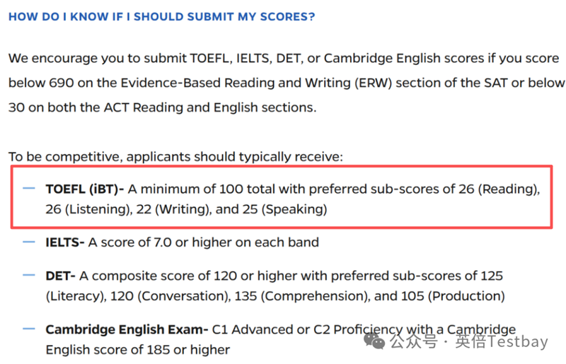 随着美国本科申请竞争加剧,语言成绩作为国际生核心门槛,要求也持续调整。UCLA、布朗大学、UIUC等多所名校近期相继提高托福、雅思成绩门槛,如UCLA托福单项从22分提至24分、雅思总分从7.0升至7.5。实际录取中,顶尖院校语言成绩普遍远超最低要求,接下来为大家盘点美本顶尖学校语言成绩要求!