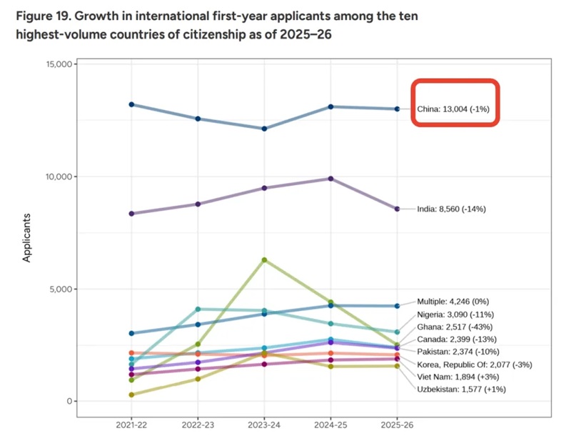 本申请季,国际申请者总数录得72,405人,较去年同期下降9%。值得注意的是,这一降幅主要归因于加纳(申请人数锐减43%)和印度(申请人数减少14%)等国家申请人数的大幅下滑。