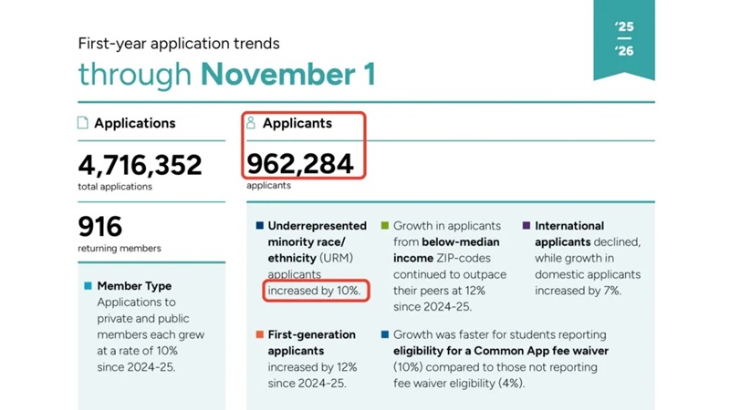近日,美国大学通用申请系统Common App发布了截至11月1日的2025-2026申请季最新数据报告,为我们揭开了新一轮美本申请季的最新动态。
