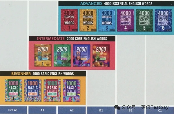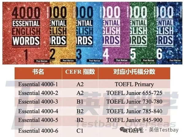 KET/PET/FCE、小托福、雅思适用的美国Compass出版的1000、basic-2000 、4000essential词汇书系列。这个系列的书是对标欧洲共同语言框架的,涵盖的主要是日常生活口语必备的和初高中核心的学术词汇。