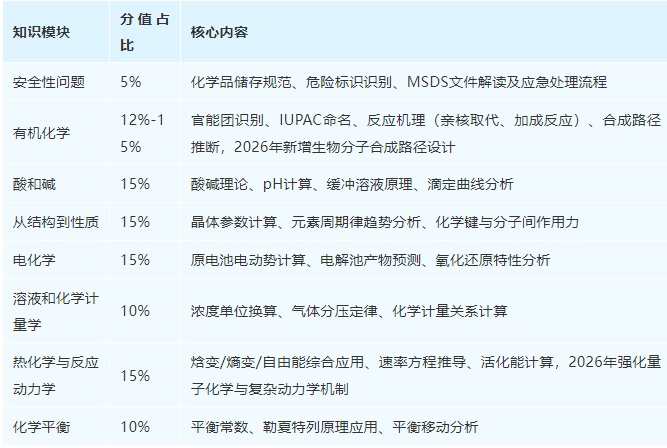 注意:2026赛季题型有创新,将出现计算与实验设计混合题,还新增了环境化学、材料科学等跨学科融合题(占比5%-10%),需重点关注这类题型的备赛训练。
