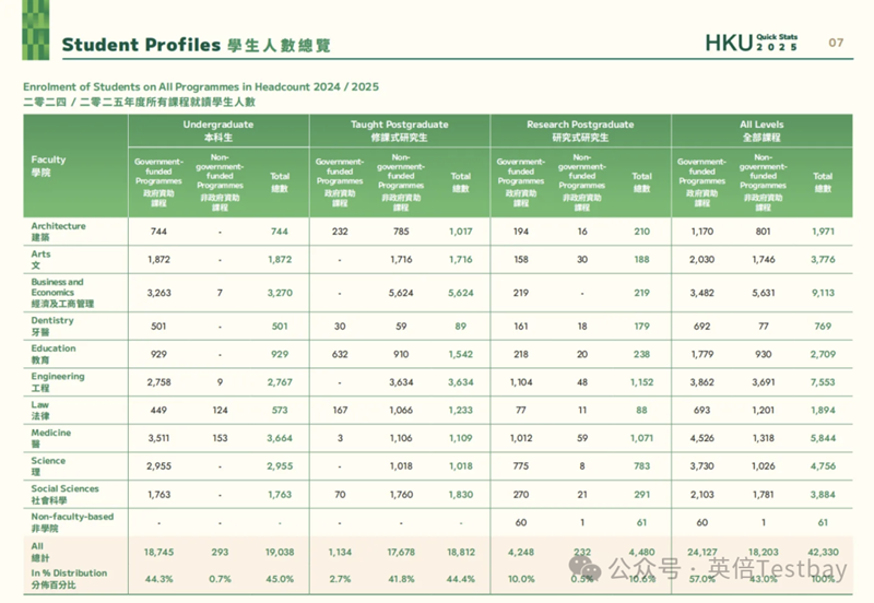 而在所有入学新生中,非本地生总占比66.3%。其中,本科新生非本地生百分比为33.9%,高于上一年(2023/24为25.5%),反映出了港大本科课程录取的内地学生越来越多,这无疑是个好消息。