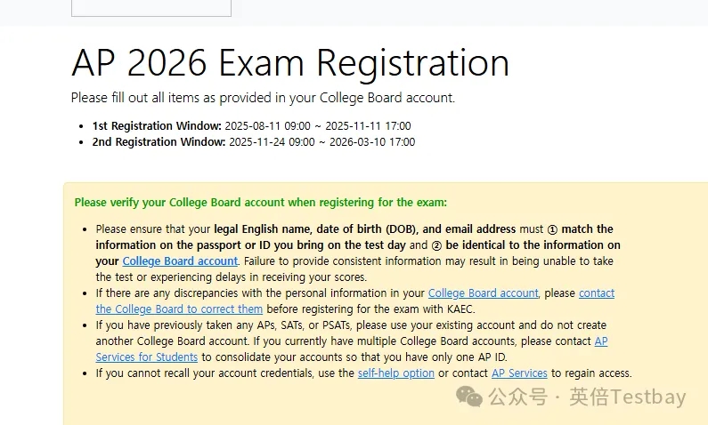 韩国Fulbright考评局2026年AP考试第二轮报名正在进行中,打算赴韩考试的学员们抓紧时间报名。
