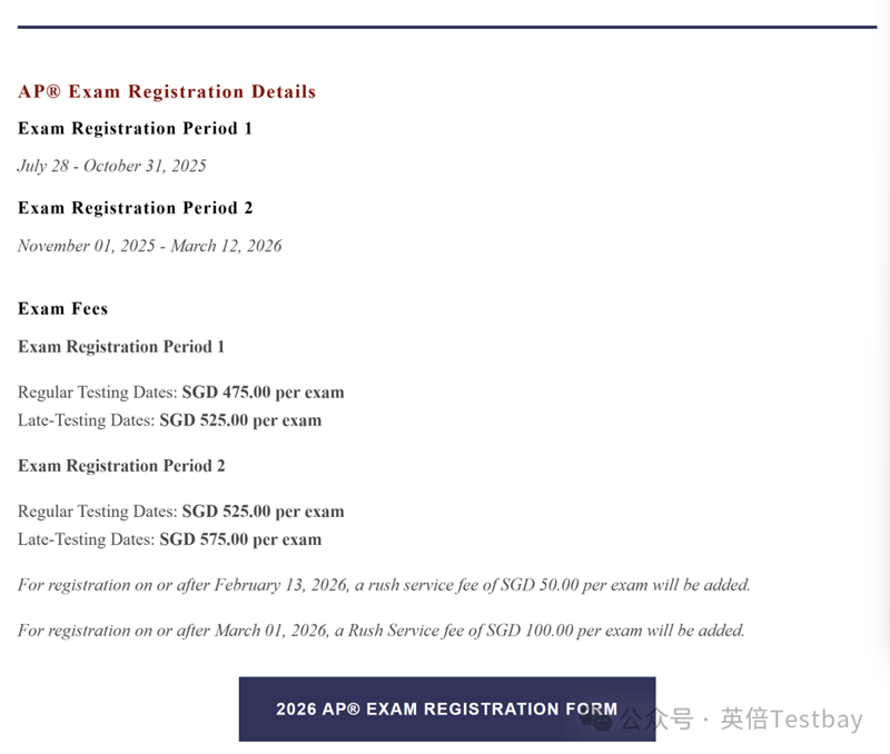 新加坡USEIC考评局2026年AP考试第二轮报名通道已开启! 备战2026年AP的考生和家长们看过来,作为最早开放的社会考生考区之一,新加坡是许多非AP校学生的首选。今天倍倍带来USEIC新加坡考区最全报名指南,带你抢占先机!