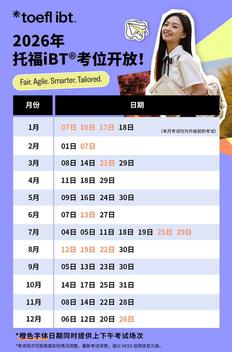 2026年托福考试场次