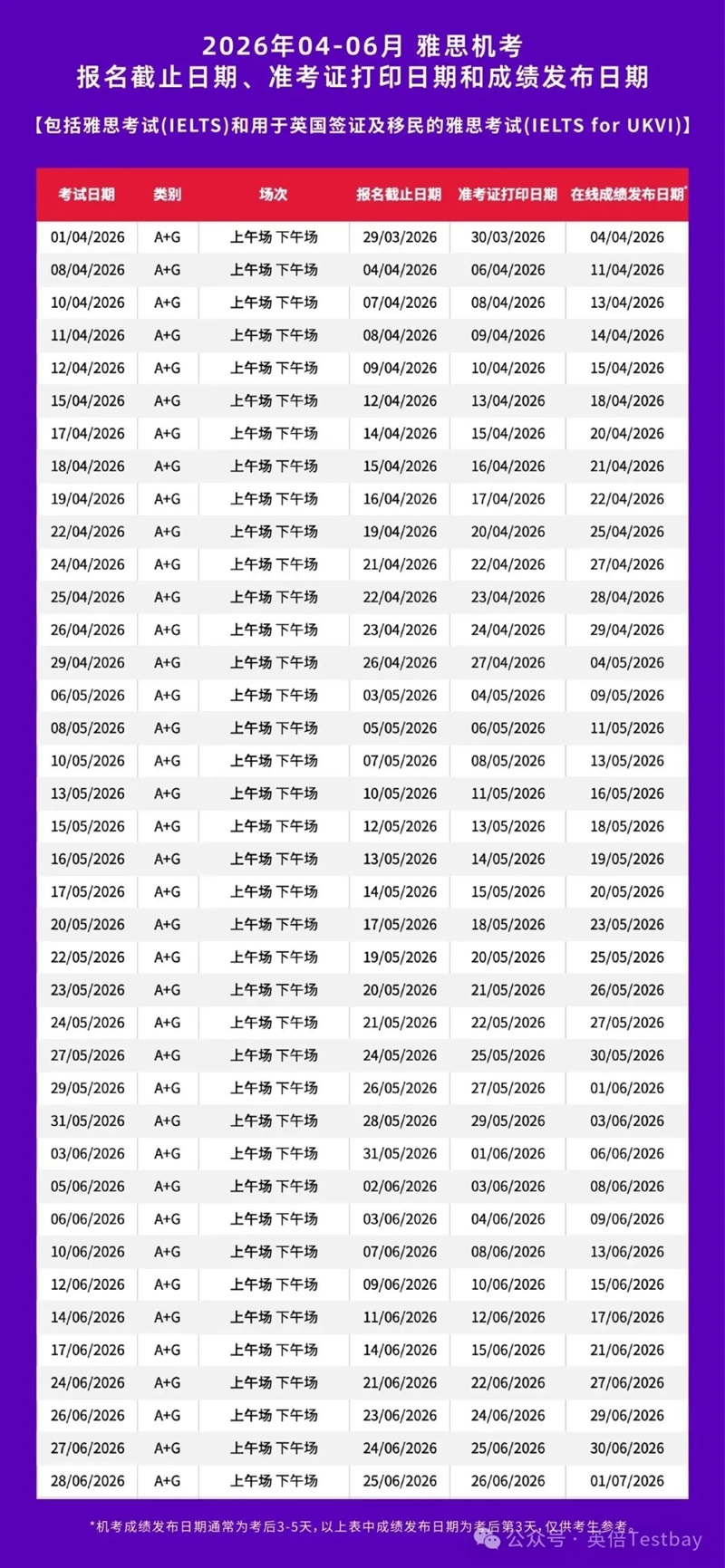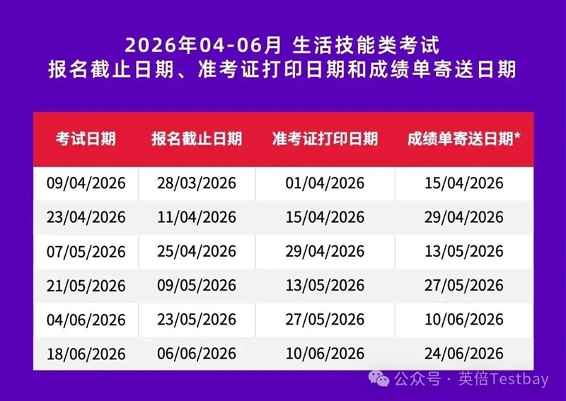 春启新程,逐梦当时。就在刚刚雅思官方发布了2026年雅思考位信息,具体包括2026年4-6月用于英国签证及移民的雅思纸笔考试和机考、2026年4-6月雅思机考的报名截止日期、准考证打印日期和成绩单寄送日期。准备今年春季考试的宝子们快来码住考试时间表。