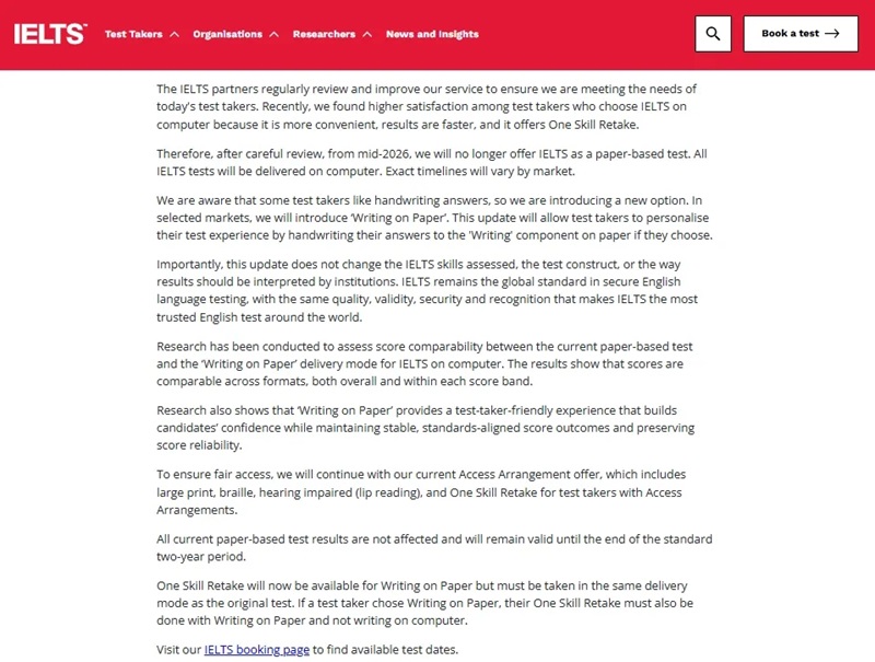 “留学圈炸锅了!2026年3月5日,雅思官方正式发布重磅公告:自2026年年中起,将全面取消雅思纸笔考试,所有雅思考试将统一转为机考形式,具体实施时间将根据不同市场略有差异,其中用于英国签证及移民的UKVI考试将率先取消纸笔形式,大陆地区最后一批纸笔考位已同步释放,截止6月28日后,将彻底告别纸笔雅思时代。”