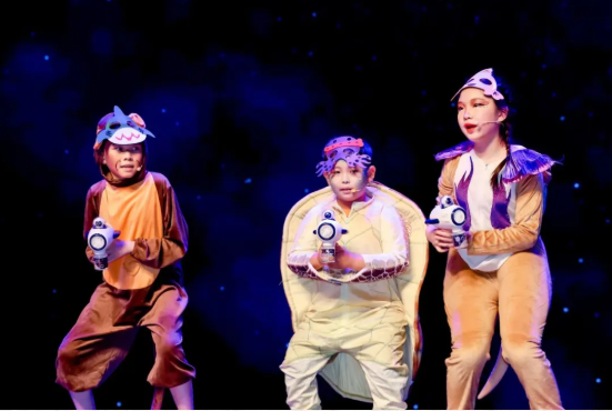 她所在的东莞清澜山学校有一支非常专业的戏剧团队,每年都会组织由学生参与完成的戏剧演出。从剧本排练到舞台呈现,几乎都由学生共同完成。对于很多孩子来说,这是一次充满新鲜感的体验:有人负责表演,有人参与舞台设计,有人准备道具和音乐,大家像在一起完成一场大型创作。