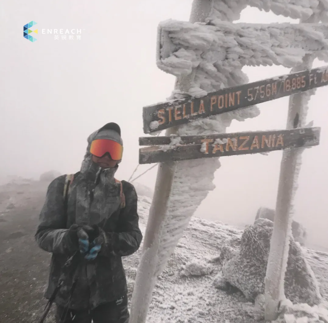 图为Aaron登顶乞力马扎罗山