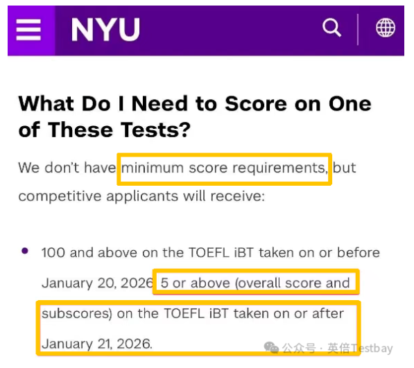2026年1月20日及以前参加的托福考试,要求总分最低为105分