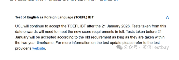 根据伦敦大学学院(UCL)官网最新信息,其入学语言测试政策已更新:
