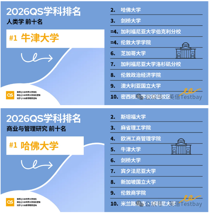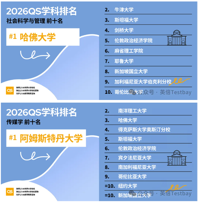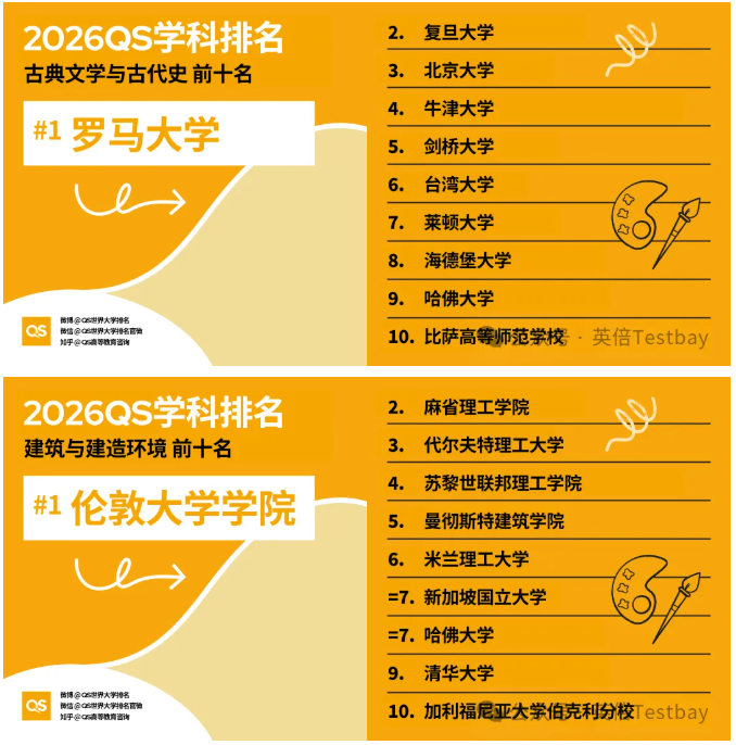 近日,全球四大学术排名机构之一QS发布了2026年世界大学学科排名!本次排名对全球100个国家和地区的1900多所大学的21000多个学术项目,跨越55个学术分支和五大广泛的学术板块:艺术与人文、工程与技术、生命科学与医学、自然科学以及社会科学与管理。一起看看本年度的最新排名!