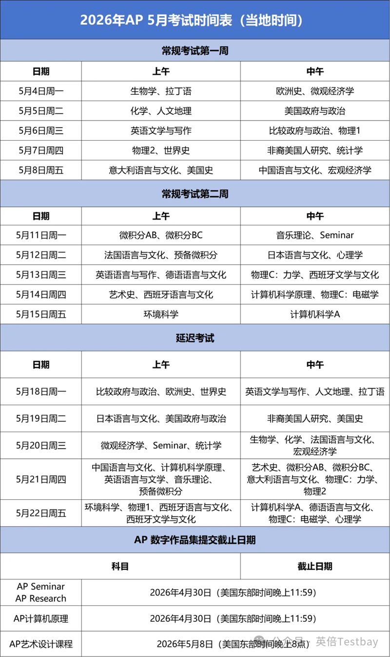 注意:仔细核对准考证上的信息,如发现差异,须尽快填写「2026AP考试查询表格」与考试局沟通修改。