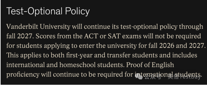 范德堡大学继续采取标化可选的标化政策。假如同学们提交了标化成绩,那么学校将综合考虑申请人的学术记录:包括课程难度、ACT或SAT成绩(如已提交)、个人陈述、推荐信、课外活动的广度和深度以及其他由学生本人提交的材料。